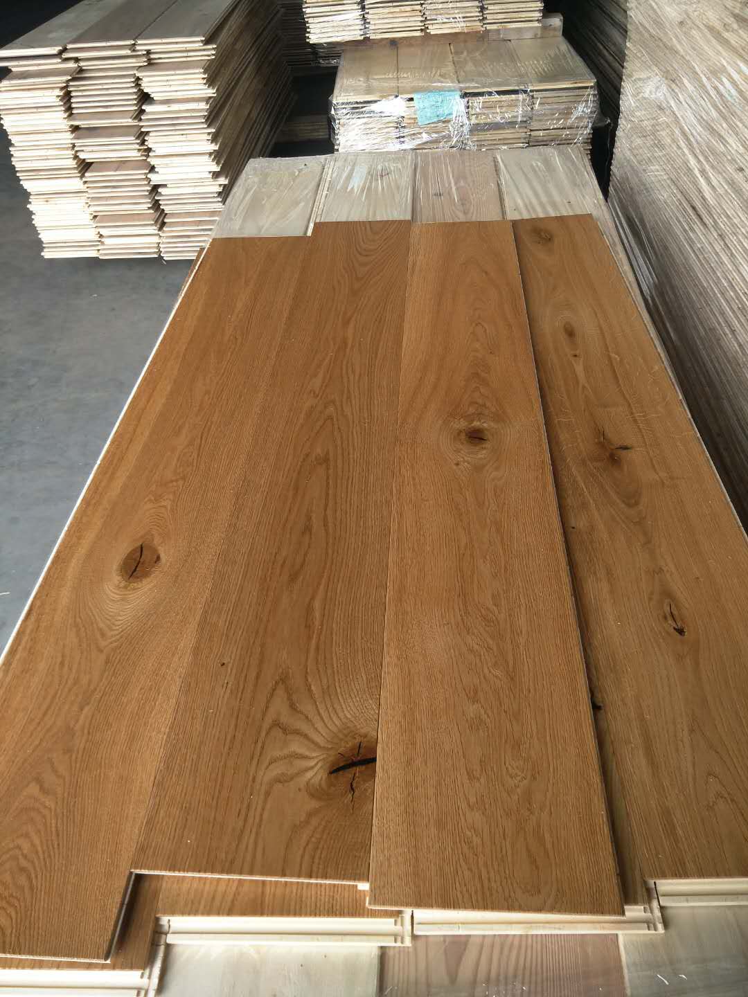 The Rustic oiled oak flooring present most rustic natural timber features according industry standard keeping timber dead knots , live knots,sapwood,black mineral lines & color variations on the plank.It gives a effect of pure natural original oak hardwood.
